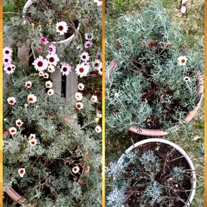 🤖 ロボちゃんポット寄せ 🤖 高砂の翁がめっちゃ成長して 主張強過ぎꉂ🤣𐤔 🩷 エティオネマ スキストサム ピンクファンファン 🩷 こんなとこに植えてたのか👀❣️花のない時期にチェリーセージを植えたから、その下から ひょっこり生えてる|ू•ω•)チラッ