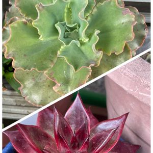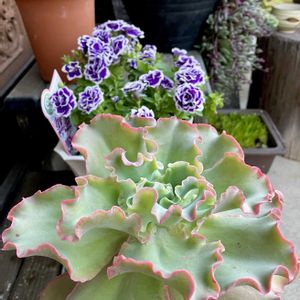 今日のお花 エケベリア 1、2枚目 冬小さくなった翁さん、元気出して来ました(*´∇`)ヨカッタ ペチュニア花衣さん、全然綺麗なのに、見切りで100円でした⸜(*ˊᵕˋ*)⸝ 3枚目 かわいい子達(*´˘`*)♡ 昨年お迎えした、チャールストンと、名無しのエボニーっぽい子、大きさ同じだったのに、チャールストンさん全然大きくなってない(*´^`)