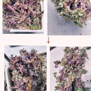 また、やっちゃった…(T_T) (6月23日📷と同じ植物) 上段を分解したら、下段状態。 葉先は無事なので、細切れで復活目指します。 軒下配置だったけど、乾かなかったみたいです。