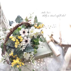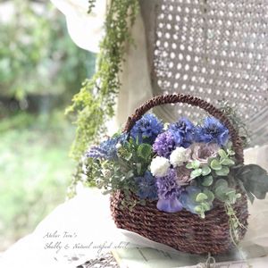ベーシックコース課題、 かごバッグアレンジです。 もうすぐ認定試験を受けられる生徒様が、 復習の為に作られました。