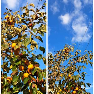 イチョウの大木の東側 朝陽を浴びて イチョウの落ち葉🍂 庭の🍊柑橘類 帰り道…