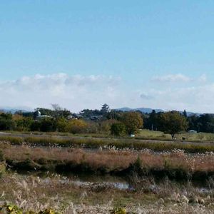 🐶散歩 いつもは、堤防の下を🐶散歩しています。 連休の晴天なので、堤防を散歩しました。 AM9:30頃ですが、暑かったです😰 お城🏯です。