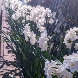 🐕の散歩道🐾🐾 ご近所の団地の敷地縁を埋め尽くす水仙 今年も見事に咲いています。 相変わらず風が強いけどいいお天気☀✨ 桜の蕾はまだまだ硬いけど足元はお花が沢山咲いて来ましたね😊