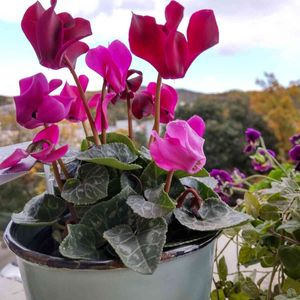 ガーデンシクラメン🪴 今日いつものお花屋さんへ🚗 目👀うつりして、なかなか選べない🤪 行ったり来たり🚶♂️ 迷った時は必ず、店員さんに "おすすめは?"と聞く事に👂 軽井沢育ち ジャドール芳香性 かすかに香りがあるわ🌟💕 迷わずお買い上げ。 すぐ横にあったストライプ柄の子と アレコレ…他10点程ご一緒にお買い上げ🥳 頭の中で、寄せ植えか?お一人様か? どの鉢が空いてたかな🤔? グルグル🌀🌀イメージトレーニング🏋️♀️ 明日が待ち遠しい😊💞 でも〜 置き場所🪴渋滞中だった😰