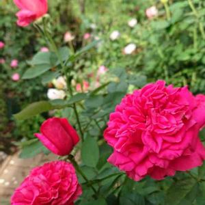 今日の庭の赤薔薇🌹 ↖️リパブリック ドゥ モンマルトル ↗️レッドエレガンス ↘️ルージュ ロワイヤル ↙️サムライ みんなそれぞれ綺麗💓