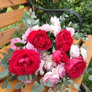 いつもお世話になってる薔薇生産者さんから~🎵 欲しいという薔薇🌹を挿し木してあげたら😄お礼にって🎵 今の時期は花が小さいけど~っていただいちゃいました🌹花束💐🌹 ピンクはオール4ラブ、赤はレッドエレガンス、絞りはフィスタ、黄色はソラーレ🌹🌹🌹 薔薇🌹の花束って嬉しいね~💓