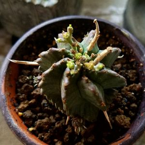 あっ‼ 3年前ぐらいに購入してから まったく変化の無かった子、、 もしや❓ ずっと部屋に置いてました。 今年初めて軒下に置いて、様子を見ていたら、なんとなーく 真ん中辺りに変化があるような。。 お水好きなんですね😃