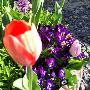 チューリップが続々咲き出しました✨ 赤紫、赤、ピンク🎵 アレ? 白、黄色のチューリップは?(笑) 謎だww