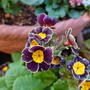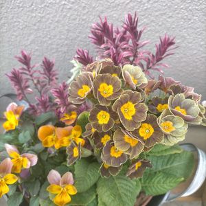 今日の花 プリムラ2つ 🤎アンティークマリアージュ 💗マラコイデス (ケショウザクラ) こちらも寄せ植えで開花中デス✨