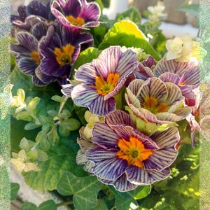 プリムラアンティークマリアージュ💚💜 1日遅れの今日のお花でした😅新年早々園芸店へ行って選びました😁初詣もまだなのに…初園芸店が先〜🏃💨連休最終日の今日も…おそらくHCでフィニッシュに決まってる〜🤣