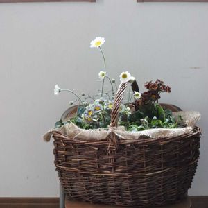 寄せ植え作りました😊 待機苗とお得苗の養生中苗 かご🧺に入れましたが 容量が意外にあって ちょっとスカスカです💦 春まで頑張ってね👍