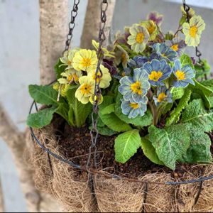 昨日の寄せ植えに続き、こちらのカゴ寄せも少し色変わりしてます🧺 プリムラのアンティークマリアージュが寒さでくすみカラーから深い色合いに𖡼.𖤣𖥧𖡼.𖤣𖥧 少しづつ咲いてきたフリルパンジーは逆に思っていたより渋いくすみカラーだったので、結果いい色合いにまとまってます٩(๑‾ ꇴ ‾๑)۶ あとはもう少しで咲く、名もなきパンジーの渋い色が加われば…♡ またどんな🧺になるのか楽しみです(〃▽〃)𖧧 ˒˒