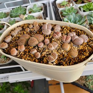 💛リトープス 弁天玉💛 東京へ研修に行ってきました🚅 コロナ禍になってからは仕事の都合もあり、あまり出歩いて無かったので、遠出でもないのにかなり疲労困憊😅 「ステイ❗️ホーム‼️」と国に飼い慣らされた犬だったので(笑) この弁天玉のように、布団に埋もれて休みたい🛌今日この頃・・・ いや、むしろ今日はダラダラしますo(__*)Zzz 今までなら関わることの無いような素晴らしい方々の講義やお話を聞くことができて、とても良い研修でした😊 今日は日差しが弱いので、リトさんを遮光棚から外に出してみました❗️ 少しずつ慣らして、そのうち遮光ネットを外したいと思います☀️