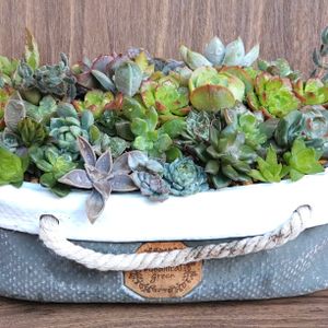 多肉の寄せ植え🍃 秋の寄せ植え✨第5弾✨ 生花用のボート型の花器に… 相変わらず普及種の多い我が家の寄せ植え💦