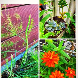 🏡今日のお庭の子たち𓂃𓂂ꕤ*.゚ アスパラガス🌿 ニョキニョキ クネクネ (ง -͈᷄ ₃ -͈᷅)ว 🌵プチプチ 多肉ちゃん (≧∇≦) 🧡🌼 ジニア 元気いっぱい❣️✨