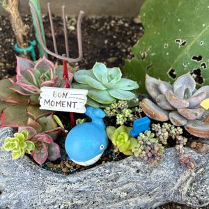 多肉のミニチュアガーデン 作りました♡ 洗濯物を干し終えて ガーデンでのんびり ティータイム🫖☕️ 小人さんになって どんぐりのティーカップで お茶したら楽しいだろうな・.。*・.。*︎💕︎︎💕︎
