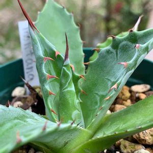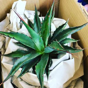 はるか沖縄から我が家に来てくれました。 アガベモンタナちゃん。 手のひらサイズでカワイイやつですわ。 ウォーターマークみっけ! ジー( ᯣ - ᯣ )