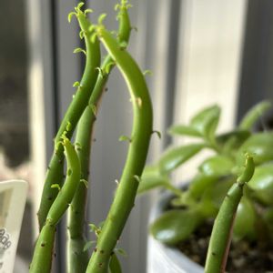 オンコクラータ… 棒のようにニョキ〜〜〜っと٩( ᐛ )و 先っぽに小さな黄色いお花が咲きました🌼