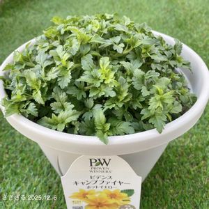 PWタゲテスゴールドメダル ♡ こちらはピンチなしで自由に育てています🤗 大きく育ちそうだけど、冬の間は5号でも大丈夫かな‼️ 周年咲きが、 このエリアではどの時期に咲くのか知りたい♡ この冬のPWは周年咲きを揃えてみました🪴 (ステラスノーストームは手に入らず💦) この時期にあまり植えない色なので パッと明るく鮮やかで目立ちます🌼 シトラスミントの香りも🎵