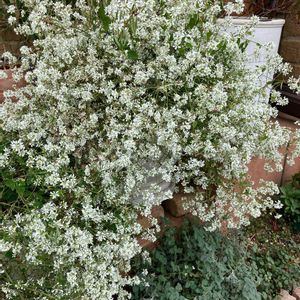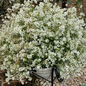 昨日に続きもう1枚😆 PW ユーフォルビア ダイアモンドスノー こちらもひとつの鉢にひと株植えたものを、段差を付けて2つ並べています☺️ どんな植物も自然な形が好きなので、梅雨入り前に蒸れ防止のために軽く切り戻しただけで、あとはピンチなし。 さすがPWブランド、ジャパンフラワーセレクション受賞品種です🏆 もっとエアリーな雰囲気のダイアモンドフロストが有名ですが、このスノーの方が花が密に咲き、気に入っています🥰 病害虫なし、手間なし👍 夏の暑さにもめちゃめちゃ強く、 園芸🔰さんにもオススメの品種。 非耐寒性なので、屋外では1年草扱いです。 Instagram tea_rose0910