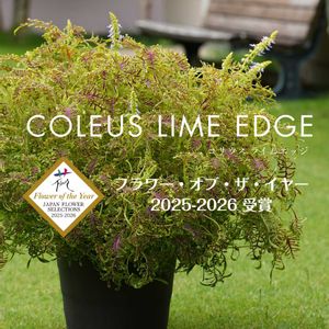コリウス ライムエッジ フラワー・オブ・ザ・イヤー 2025-2026を受賞いたしました。 コリウス ライムエッジのご紹介 コリウス ライムエッジは、葉そのものを主役にしたガーデンづくりに最適なリーフプランツです。暑さに強く、半日陰でも冴えた色調を保つため、夏場の花が少ない時季にも空間を明るく演出。株は自然にまとまり、過度な徒長を抑えながら、こんもりとボリュームよく育ちます。寄せ植えではダークカラーや紫系の葉・花と合わせるとコントラストが際立ち、花壇ではボーダー使いでリズム感のある植栽に。初級者にも扱いやすい育てやすい品種です。 来年4月下旬ごろから全国で販売予定となります。 皆さん楽しみにしてください 詳しくはこちら https://provenwinners.jp/product/coleus_limeedge/