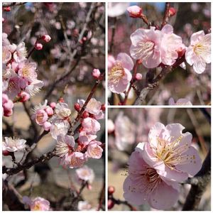 昨日出かけた公園 梅の名所 梅ヶ丘 羽根木公園 梅の実 実ってます 左上 中国野梅 右上 養老 左下 淡路しだれ 右下 紅冬至