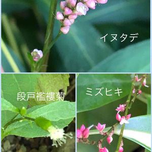イヌタデ、ミズヒキは毎年生えてきて 邪魔にならない処のは抜かないで育っています。 段戸襤褸菊は去年に続いて一本生えてきて、気が付いた時には蕾が出来ているので今年も花を咲かせます。 去年種が飛び散る前に抜いたのに、こっそり落ちてたようです。