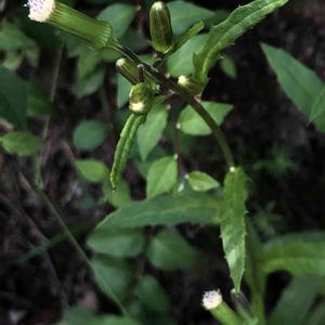 園地にて フォロワーさんの投稿を見て撮っていたのを思い出したダンドボロギク 細長い筒状花でノボロギクやベニバナボロギクと同じようにこれで開花状態です