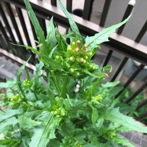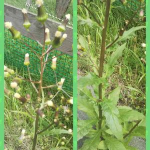 ダンドボロギク 綿毛が出ていたので、咲いている花をあちこち捜していて、フト💭 …もしやこれが花…🙄 満開って状態かな😂 葉っぱがちぎれているのは、🦌さんが食べたせいです😋 これは、マシな方…殆ど下の葉っぱがありませんでした💦