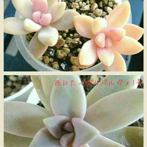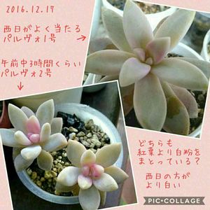 パルヴォリバーの紅葉、経過観察中です! ほとんど色の変化はないですね。 意外なことに今も日照時間短い方が発色良いです! どちらも紅葉するより白さが増したように見えますが、白粉て後から増えるものでしたっけ?引き続き観察します♪ <追記> 2015.10~葉挿し&挿し穂から育てて初めての紅葉です。 水やりは春~秋まで土が乾いたら即(一週間~10日、又はそれ以下)していました。 徒長させているのに気付き11月半ばくらいから断水しています。 シワってきたらあげようかと思っています。