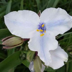 白いツユクサが咲きました😊 ムラサキツユクサの色違いなんですがツユクサのタグにも載っているのが少ないですが他に名前があるのでしょうか? 昨年はツユクサでタグ付ました 名前 教えて下さいね🙇♀️