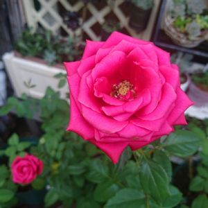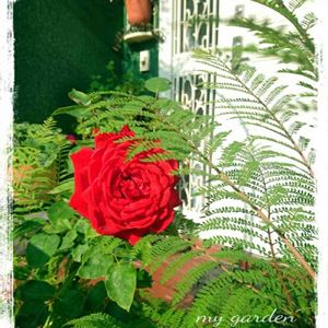 玄関前に真っ赤な薔薇が一輪咲きました💓 名前は、忘れちゃった💦 スーパーで枯れかけた苗を連れ帰ったので 1番花になるのよね✨ (*'∀'人)♥*+ こんなに綺麗な 花が咲くんだよぉー 。゚(゚^ω^゚)゚。