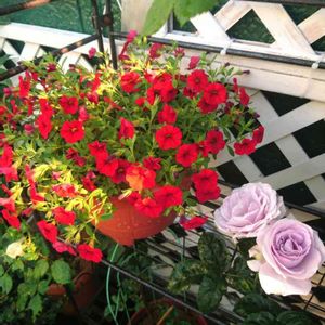 改めまして、 こんにちは(〃・д・) -д-))ペコリン☀️ 今朝は涼しくて 扇風機だけでもしのげるお天気です。 カリブラコア スーパーベルダブルブルー💜💙 今年初めて育てました🎶 カリブラコアは 赤とピンク、紫と 冬越ししたので 私的に育てやすい子です💠 (*^^*)八重咲きのカリブラコアは 初めてですが 小さな青薔薇の様に咲いていて、お気に入り💗 乱れたら切っちゃうだけ✂️(笑) のズボラ管理ですけどね^^; 一面を覆い尽くしているのは…… 🌱🌱🌱🌱🌱🌱 ツル薔薇の フランソワジュランビル? と思わしきお方の 今年伸びた 新芽❣新芽❣新芽❣╭(°A°`)╮wa-〜 とにかく伸びるので^^; 地面ひこずって 伸びまくり~o((=゜ェ゜=))o💦💦💦 控え目に一輪咲いているのは、 薔薇クロード・モネさん🌹✨ o(・`д・´。)ヵ゛ンハ゛レ !