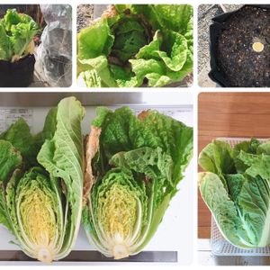 プランターで育ててる白菜を収穫しました𓂃✨ 9月に苗を植えてちょうど3ヶ月 大きさはちょうど多肉を入れてるカゴくらい↘️ 芯も小っちゃ😳 プランターなのでお楽しみ程度です🥰