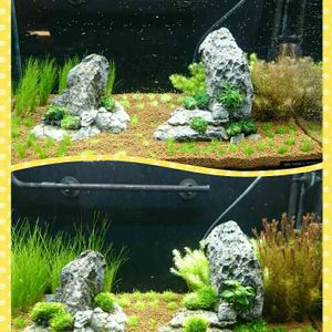 元旦立ち上げ水槽34日目🙋 やっぱりソイル(底砂)に肥料がないと駄目な様で仕事帰りに購入しました ついでにバッサリとトリミングしましたが掃除が大変😱 早速までキッチンへ行ったり来たり😰 今日は色々説明します まず上から見た全景と横正面 上ので水草種類を説明します 左ヘアグラス 右石の両サイドはマヤカとリスのしっぽ 石と石の間の丸いのはリシア 浮草なんで石に巻いてます ちなみに大晦日に巻いてましたw リシアを挟んで上下がウォーターローン 下のウォーターローンを挟んで左右がショートヘアグラス ヘアグラスは石の裏は根元付近でバッサリ✂ あと全体的に1/3✂ ショートヘアグラスは左だけ思いきって✂ リシアとウォーターローンの管理が良くわからずちょっと実験的に✂ 底砂にスティック肥料指して暫く観察です 魚投入どうしようかな😰 長々すいません 記録用なので😱