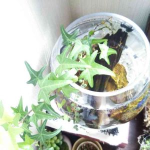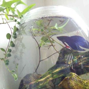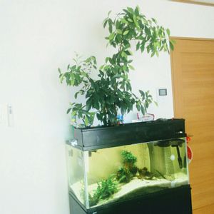 旦那が水槽に突き刺したDAISOのガジュマル(4年もの)。 旦那曰く、水を浄化しているんだとか…