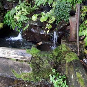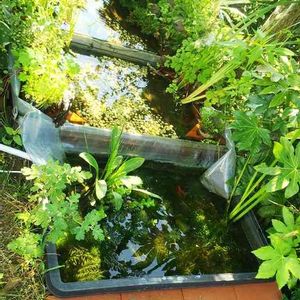 実家の父親作成の水辺です ビニールがちとなんですが 段々になってて センサーで水が流れます