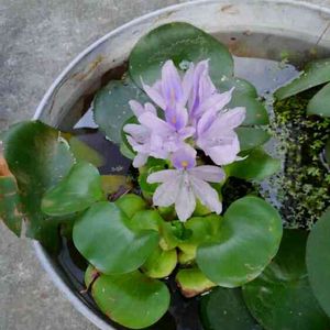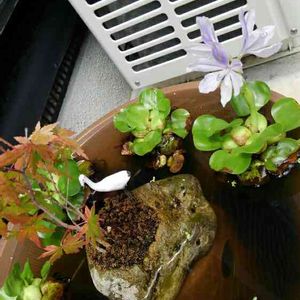 また咲いてくれたホテイアオイ。やっと二回目💨 手入れを怠り、このメダカ鉢はスネールの巣窟😱😱😱😱😱😱