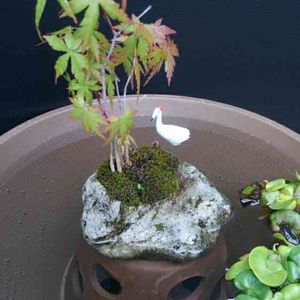 そして性懲りもなく新しいのを立ち上げ。 昨日買った苔盆栽を島に見立てて。 また鶴?とお思いの皆さん❗ 鶴が好きなんだよ❗どうしても❗