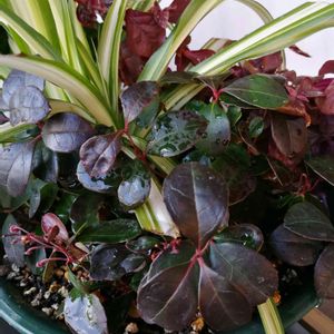 "悲しい姿に💧" 今日の午後、 お花の水やりの時のこと。 チェッカーベリーの鉢の周りに、ほんの少しだけ土が散らかっていた。 何か変と思いながら、水やりをする。 水やりをしながら、、、 「えぇ〜〜〜😱」と気付いた。 あのチェッカーベリーの赤い実が 無い! 無い!! 無いぃ〜〜〜!!!! 全部無いぃ〜〜〜!!!!!! 帰宅した夫に、写真を見せながら、事の次第を説明した。 夫も、その姿に唖然😲😲😲 夫「あら〜(赤い実が)無いやん」 私「全部食べちゃうなんて〜😢」 夫「そりゃあ、止まらへんやろ〜 歯ごたえも良かったんちゃう」 私 ⤵(。ŏ﹏ŏ)ガッカリ⤵ チェッカーベリーの可愛い姿を投稿してお披露目出来て良かった。 でも、あれから、2週間しか経っていないのに😣、 遠い思い出のように思える😅 ①②たぶん、鳥🐦さんに赤い実を食べられたチェッカーベリー ③1月24日に投稿した可愛いチェッカーベリーのたくさんの赤い実🔴🔴🔴 ④葉っぱの奥に隠れていて、かろうじて、残っていた赤い実🔴 この残った赤い実は、また、葉っぱで隠した。 これは、大事に守りたい❣️
