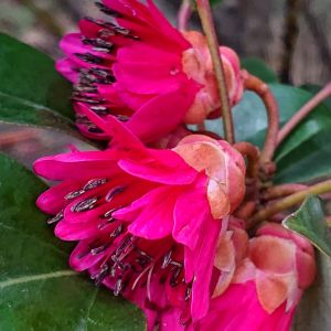 ロドレイア “ 竹下 ” シャクナゲモドキ ロドレイア ヘンリーは中国南部~ミャンマーあたりを原産とするマンサク科の樹木 調べたけど、ヘンリーとか、竹下とか、なんかよくわからない わかるのは色濃い花で蕊が長く、下向きに咲く私好みの花木ってこと😃 欲しい病がまた出そうで 怖い😆😆😆ぞ~~💦