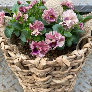 こんばんは😺 本日のカゴ寄せ🧺✨✨ 『天の羽衣』というお名前のパンジーを お迎えしました🤗💕 カゴに入れたかったので優しいお色を選びました🤭✨