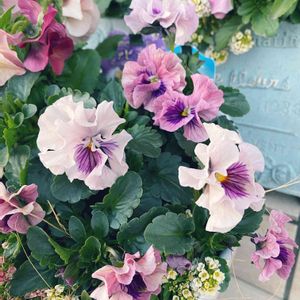 うちのハンギングバスケットのお花たちがだいぶ育って来ました❁✿✾ ✾✿❁︎ 左がヌーヴェルヴァーグ~すみれの革命~、右が天の羽衣、下が種まきビオラのピエナミックスです🌼*・