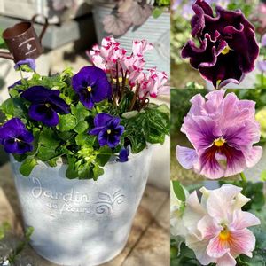 こんにちは😄こちらは良いお天気です☀️ ⬅️寄せ植え💓やっと1個つくりました。チューリップも仕込んでいます💓 絵になるスミレ&ガーデンシクラメン ↗️アンティークラッフル シックな大人色で一株で25センチの大きさになるとのことで、この苗2個だけ大きく伸びて持ち帰りなさいと語りかけられてしまいました😆 午後は待機中の苗を植えなくては💦 今日も素敵な一日をお過ごし下さいね🍀