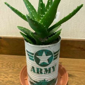 おはようございます 今年の1月値切り品100円で購入したアロエ不夜城🍀 はるさんにアドバイスを頂いて、子株をもいでミルク🍼🐮のリメ缶に植え替えてみました😊