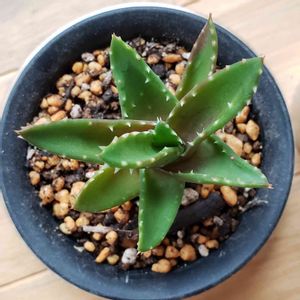 今日はアロエ特集 不夜城。 ホームセンターでも良く見かけるメジャー選手という印象。 右:去年11月 左:最近 驚異の成長ではないけど育っている。 ホームセンターだとそこそこのサイズに育っているのが売られていたりするから ついつい対抗心が芽生えてしまいそうになる。 真夏の直射日光で茶色くなったりしないで丈夫な方だと思う(他のアロエのついでに遮光ネット下だったけど)。 ※感想には個人差があります
