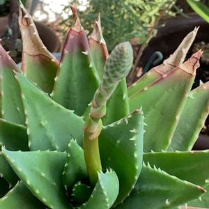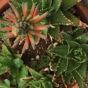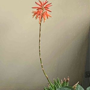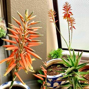 アロエの花が咲き始めました😀 数年ぶりに子株を取り外してスッキリしたけど、もう根もとに子株がにょきにょきし始めました💦