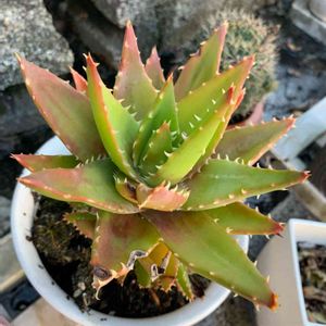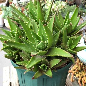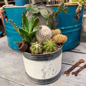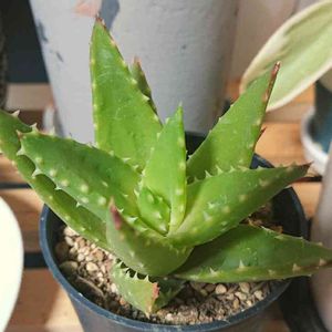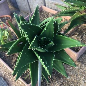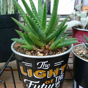 お友達に子株を貰ったアロエの不夜城、大きめのリメ缶に植えて男前な顔になりました😃