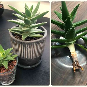 先月胴切りしたアロエ不夜城の植え替え。子株は外して別に植えた。