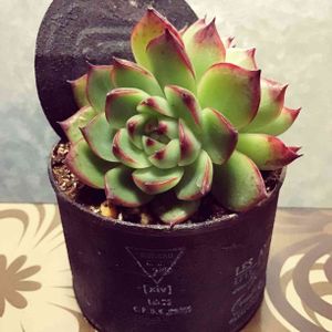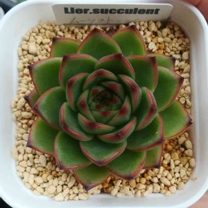 🍀エケベリア ムーンストーン🍀 エッジが赤くてかわいい子💕 でも先日UPしたファイヤーピラーさんと区別がつかない💦 家族の 一緒じゃない? に反論出来ない😅 一緒じゃない! ちょっと違う・・・、たぶん だって札にそう書いてある😂 名前が何だって別にいいのさ この子が可愛いければさ❤️